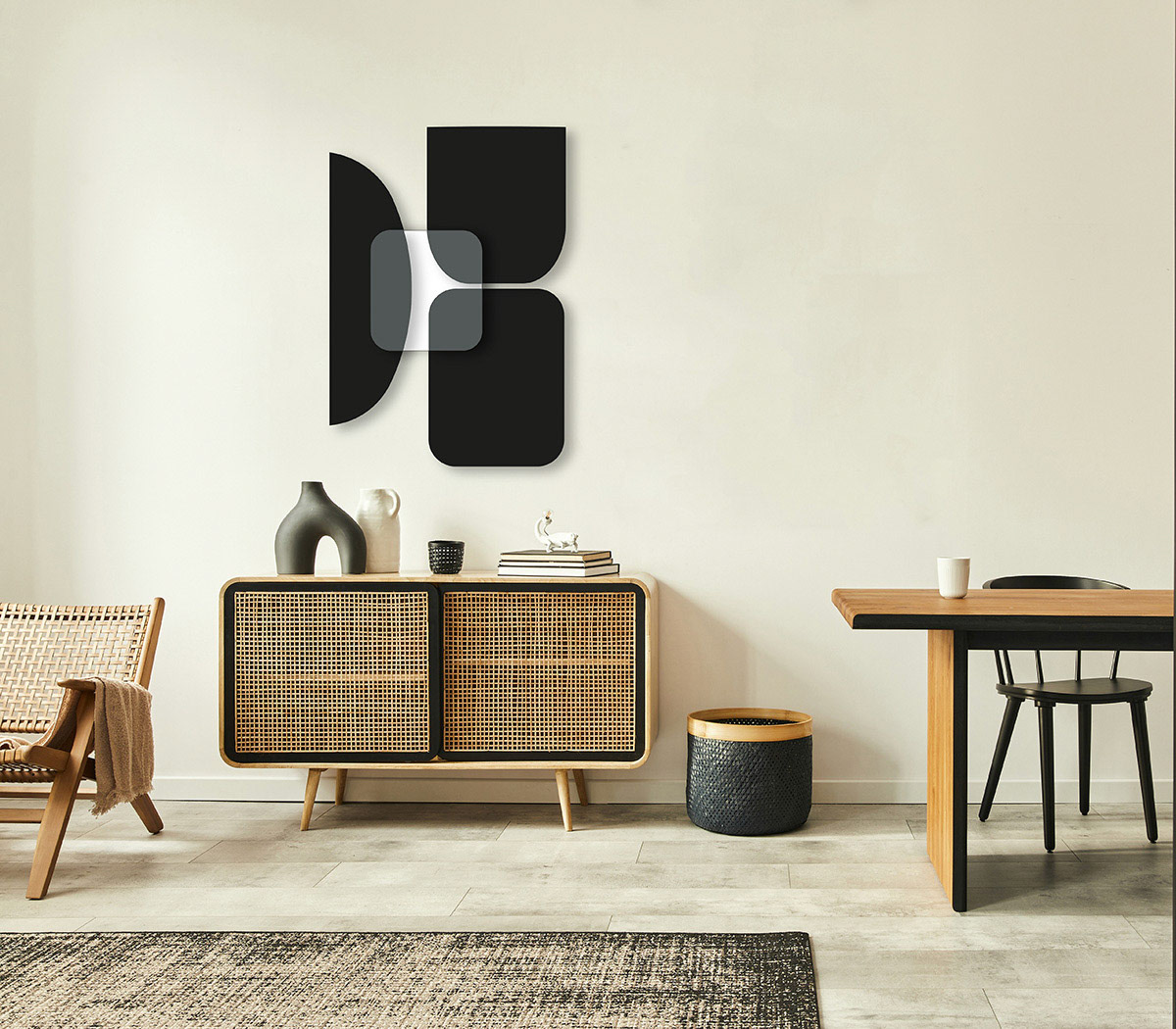 Its geometric shapes and subtle color palette make it a perfect match for almost any interior. It will also be a stylish finishing touch when displayed alongside your favorite paintings or graphic art. Let your imagination run wild!