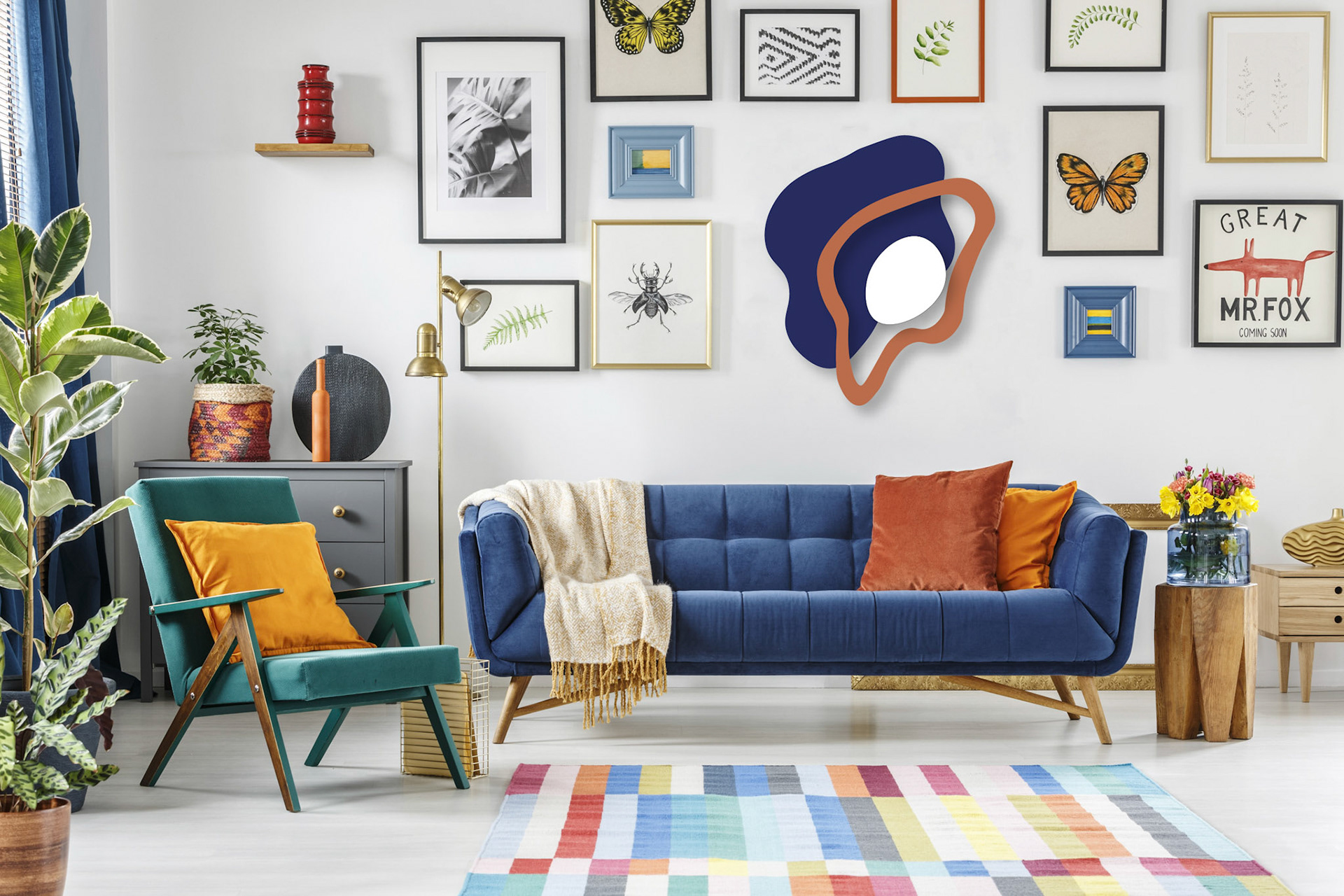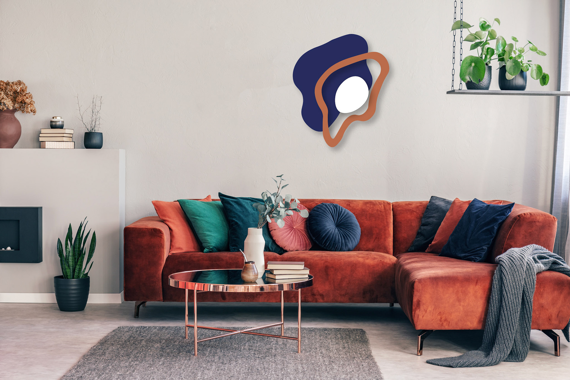 It was designed to complement both contemporary and retro-style interiors. The deep navy combined with burgundy will instantly enliven any wall and emphasize the character of your space. It also looks fantastic when displayed alongside your favorite paintings and graphic art. See for yourself!